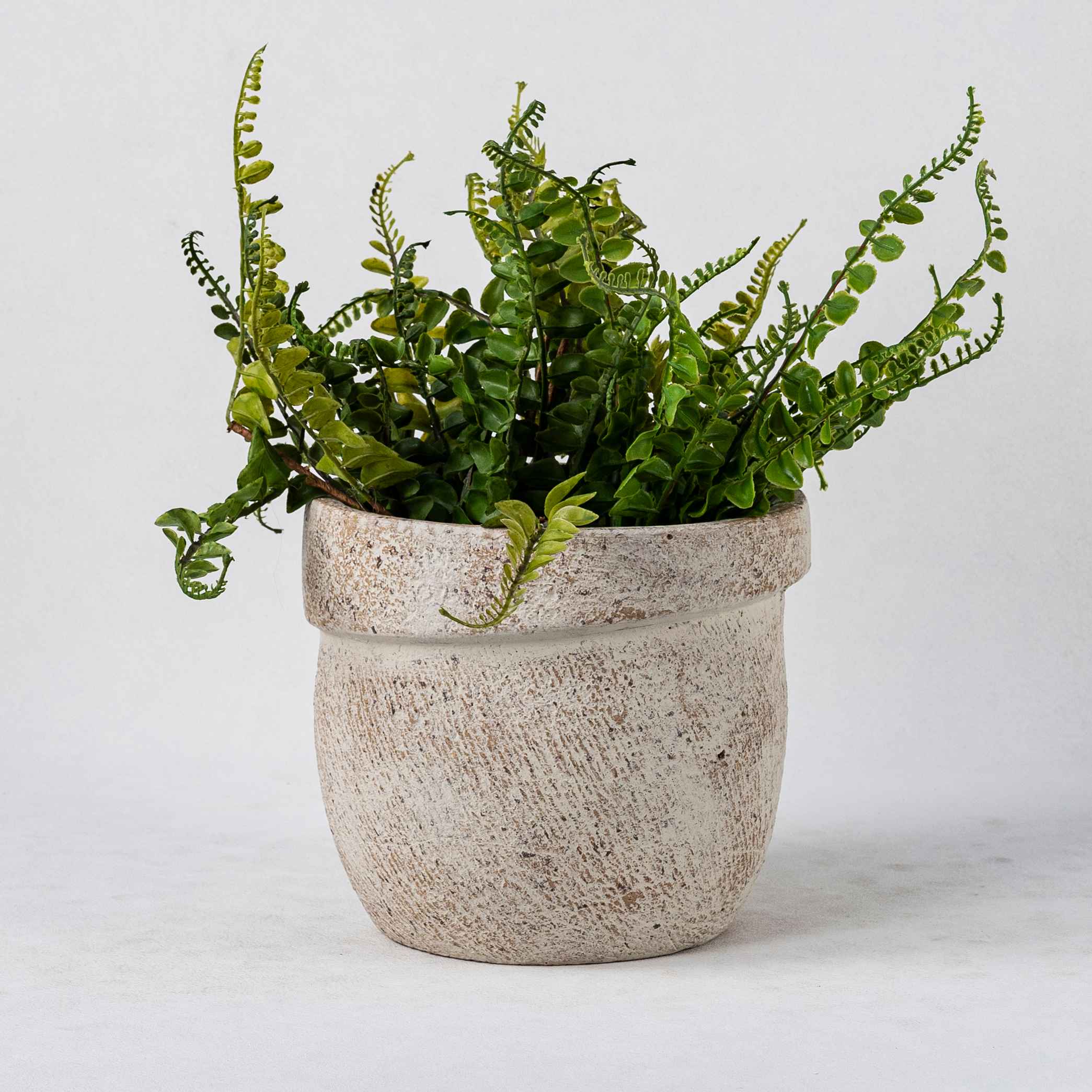 - ملمس ترابي خام: صُنعت هذه المزهريات بشكل أساسي من التيراكوتا، مع بعض المزهريات التي تشبه الأسمنت، وتحتفظ هذه المزهريات بعلامات طبيعية مصنوعة يدوياً. السطح محبب وخشن الملمس، ويتميز بتشققات خفية أو تأثيرات غير لامعة تعكس أصالة "غير مروضة".