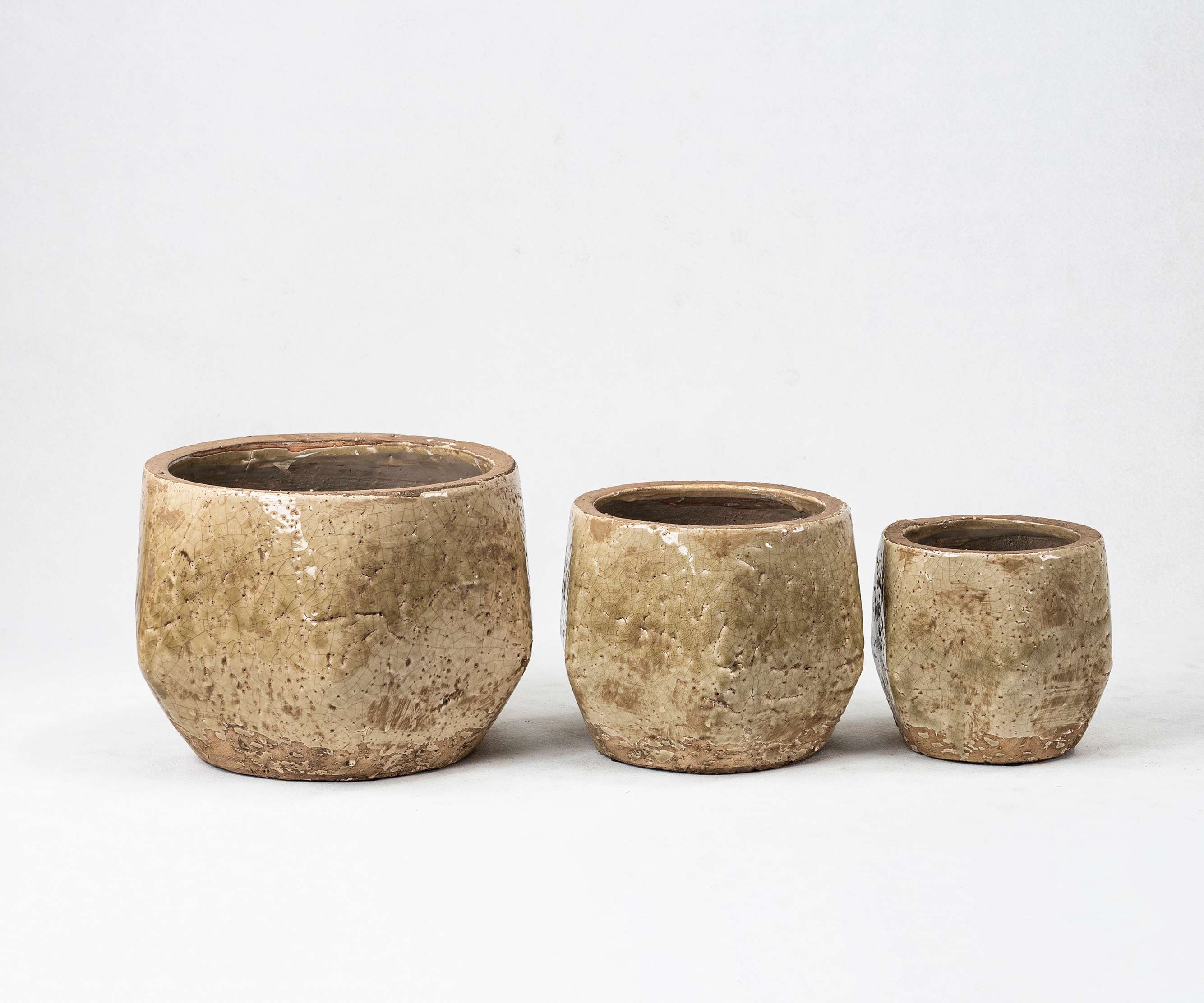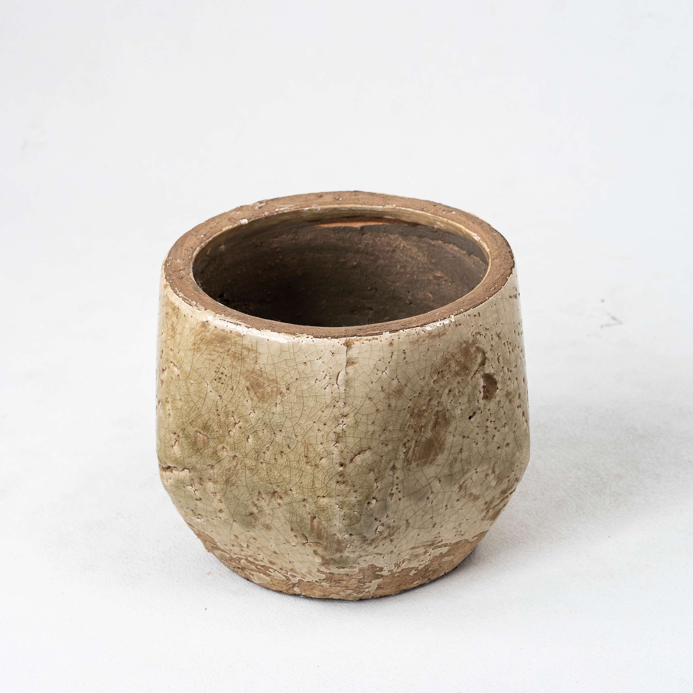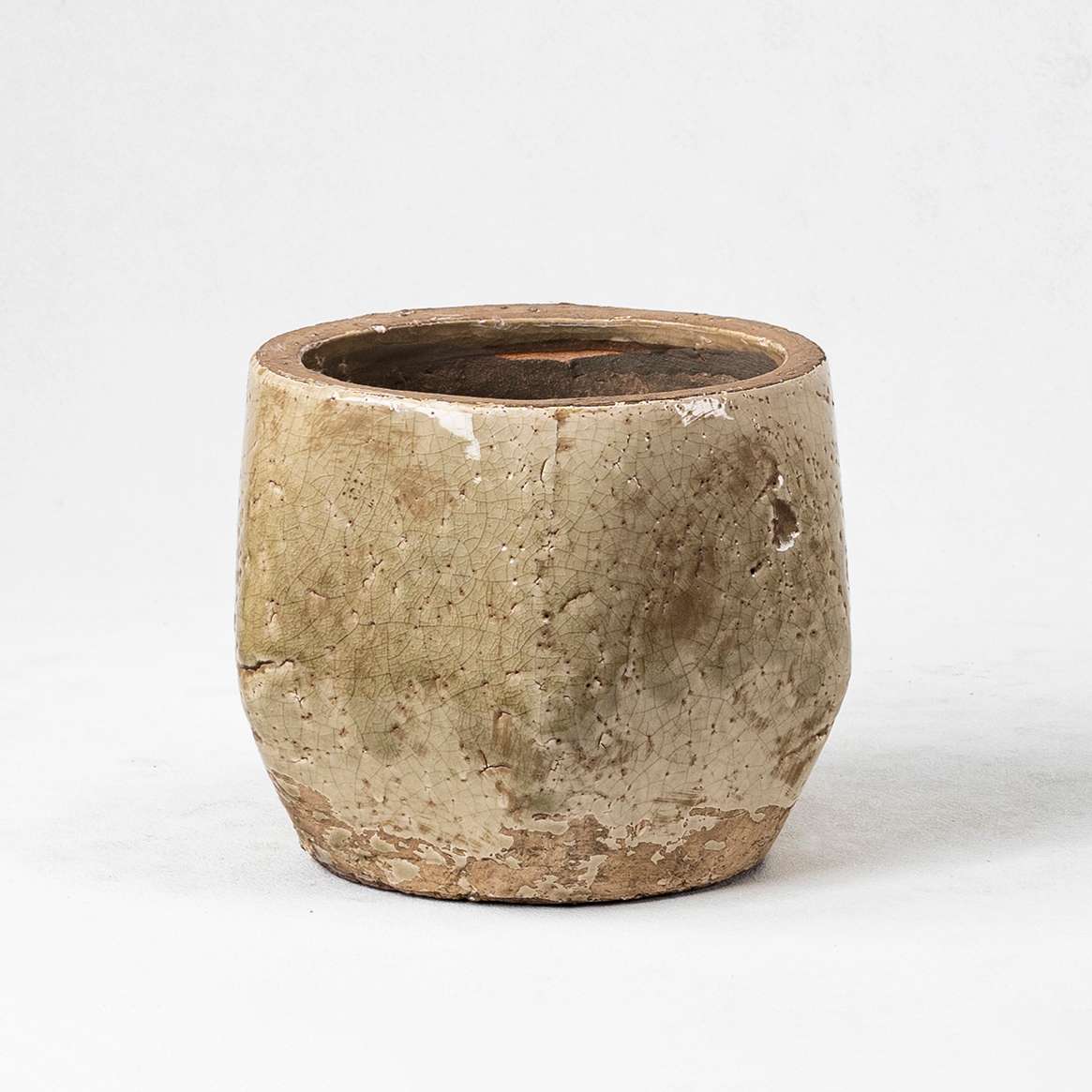 - Natural Patina & Aging Effect: The planters feature a light grey, off-white, and grey-white base, accented by random splotches of light brown and orange-brown, simulating the aged look of time-worn objects. Some areas expose the natural clay color, maintaining the terracotta’s raw texture while reflecting a “vintage feel.”