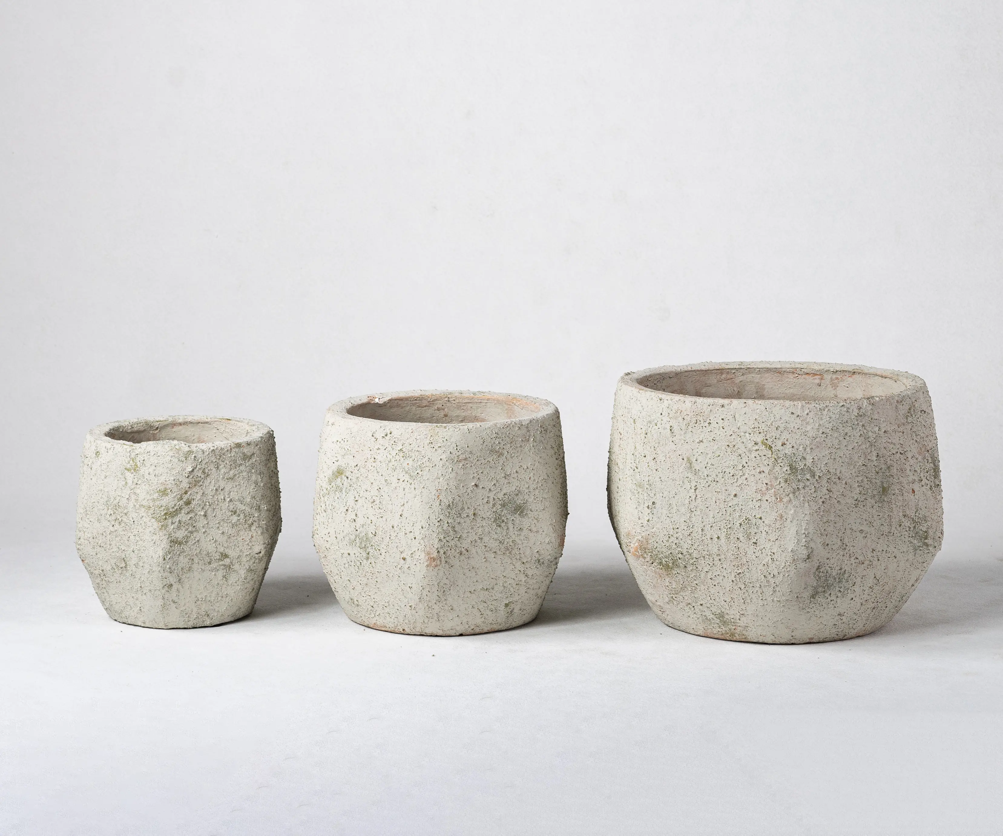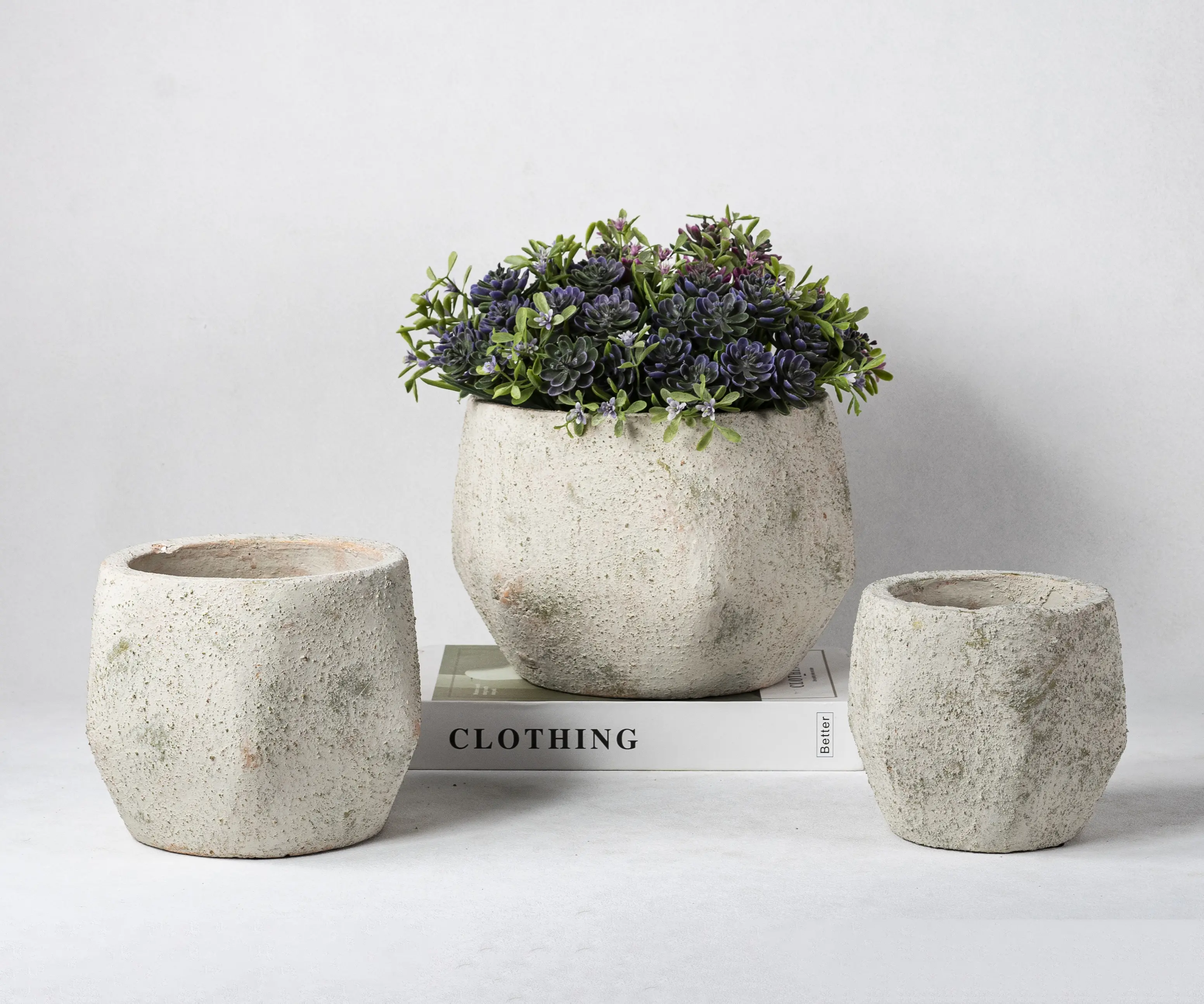 These rustic bulk planters are made from cement, coarse clay, and terracotta, featuring a naturally aged, handcrafted texture with subtle moss and patina effects. Perfect for home decor retailers, florists, lifestyle brands, and garden centers, they bring natural warmth and visual interest to any space.