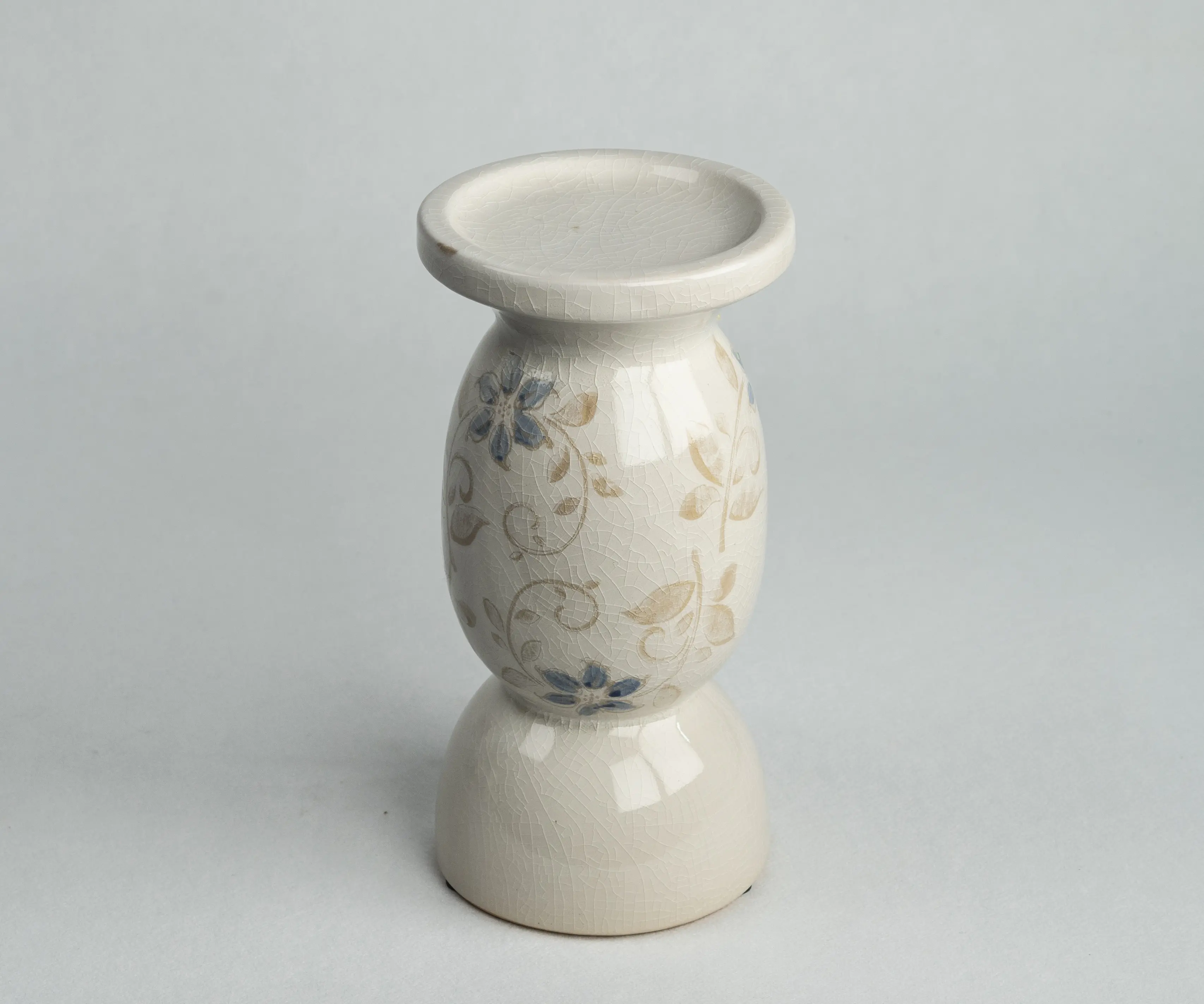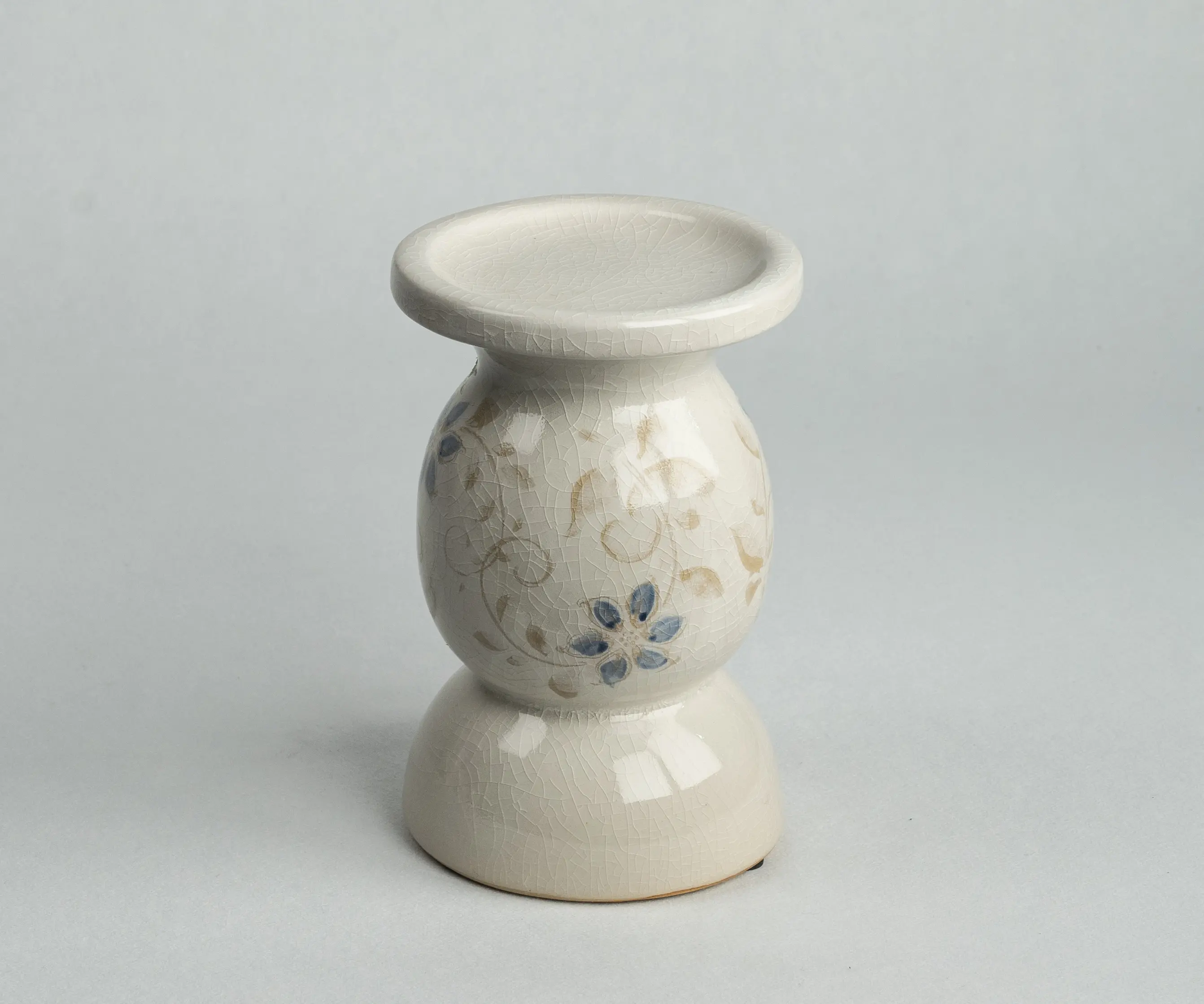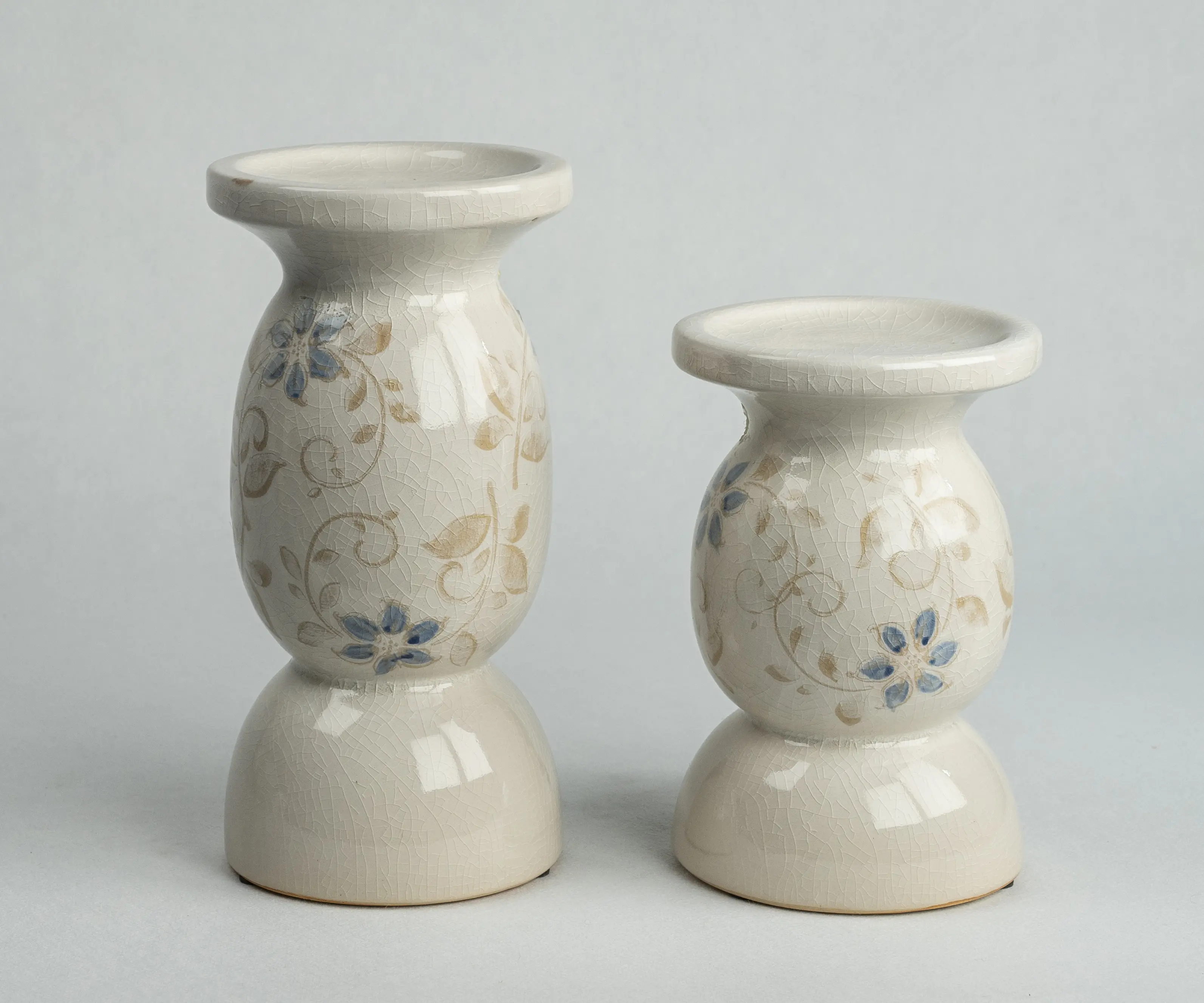 This Wholesale ceramic candle holder collection is made for professional buyers in hospitality, floral, and gift industries. Each piece features high-white ceramic, a natural crackle glaze finish, and delicate hand-painted blue floral motifs. With two sizes and shapes available, it offers both decorative appeal and functional versatility—ideal for hotel decoration projects, floral displays, and premium gift assortments.