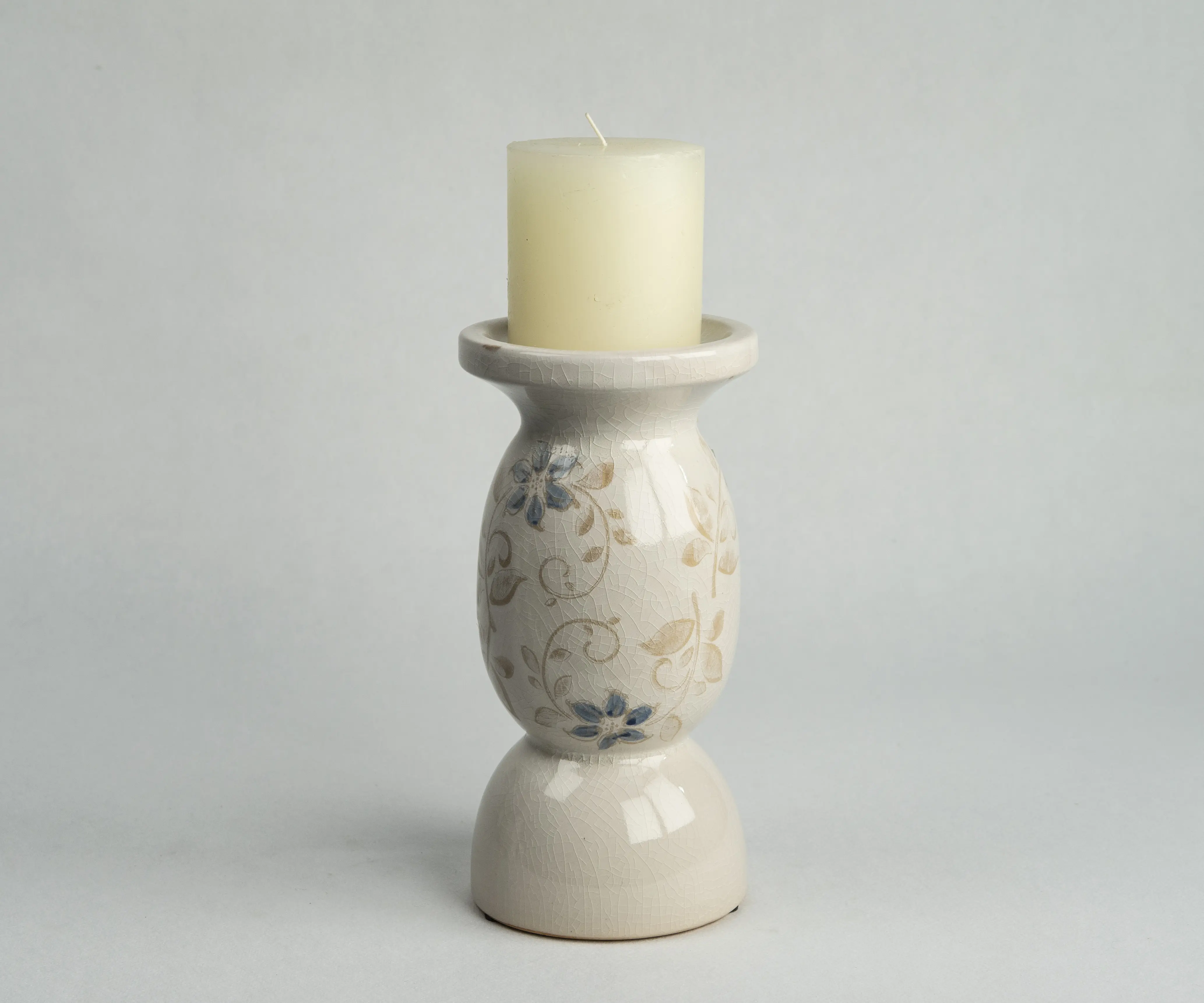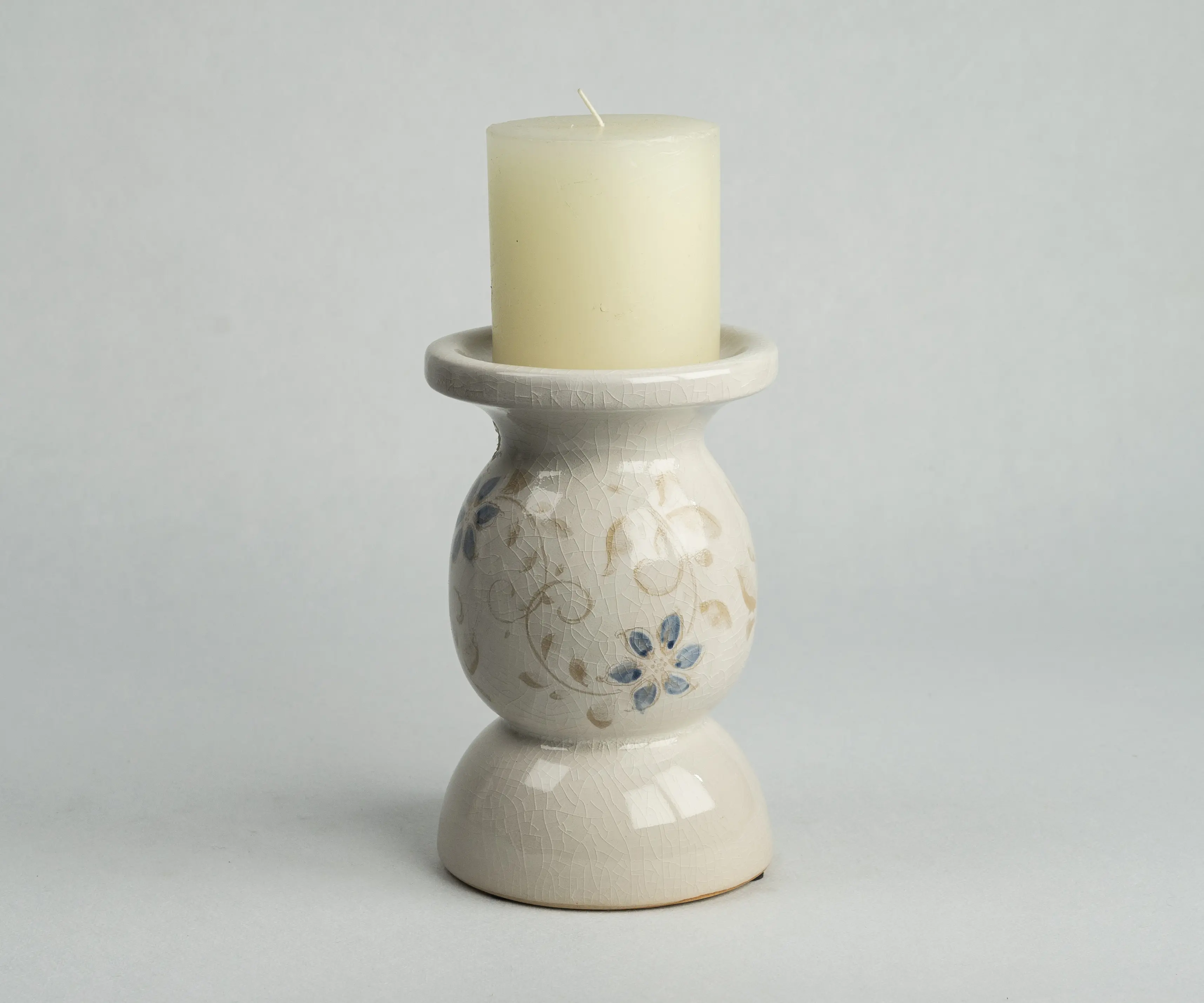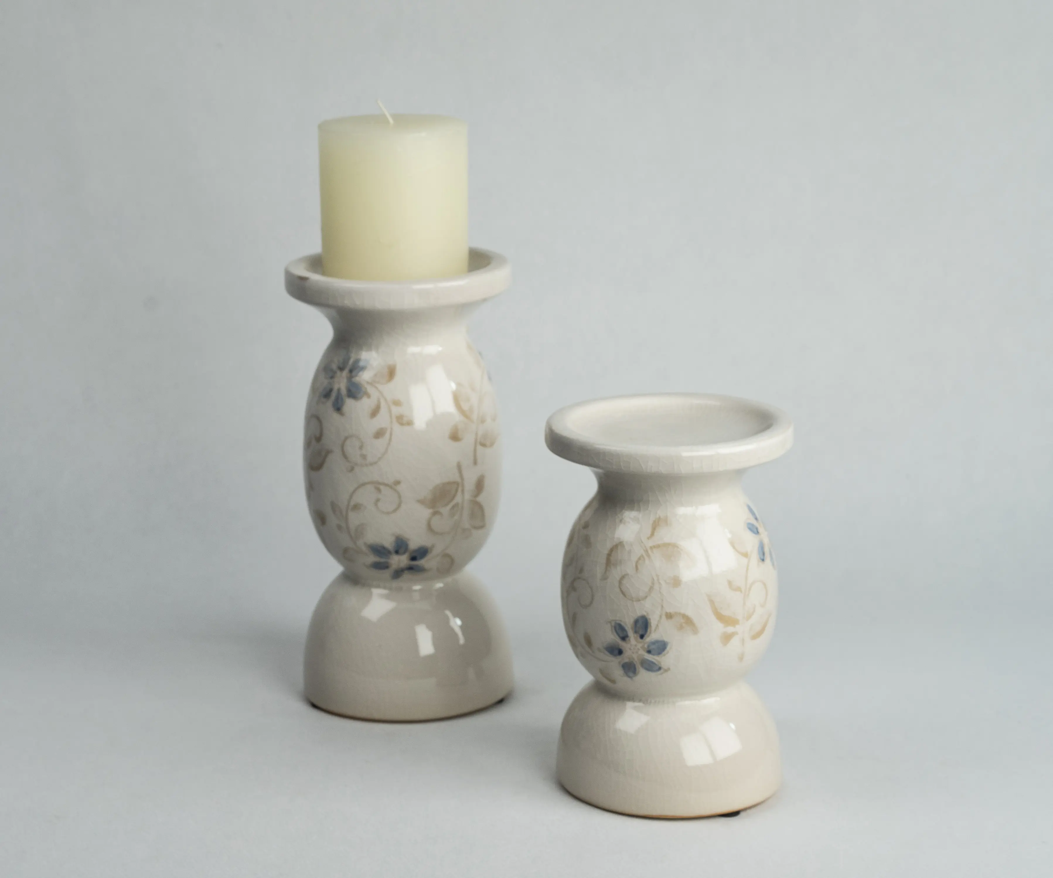 This Wholesale ceramic candle holder collection is made for professional buyers in hospitality, floral, and gift industries. Each piece features high-white ceramic, a natural crackle glaze finish, and delicate hand-painted blue floral motifs. With two sizes and shapes available, it offers both decorative appeal and functional versatility—ideal for hotel decoration projects, floral displays, and premium gift assortments.