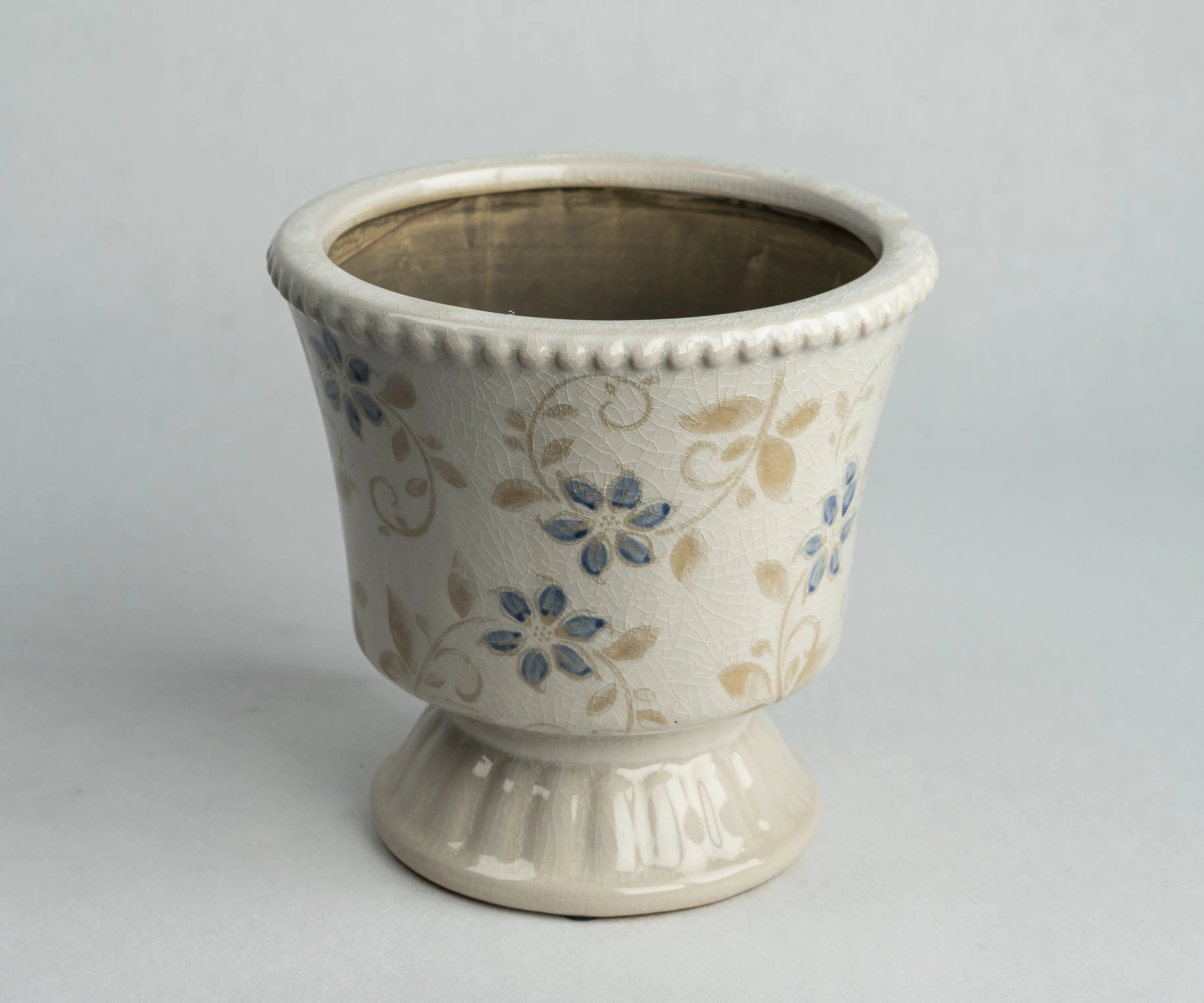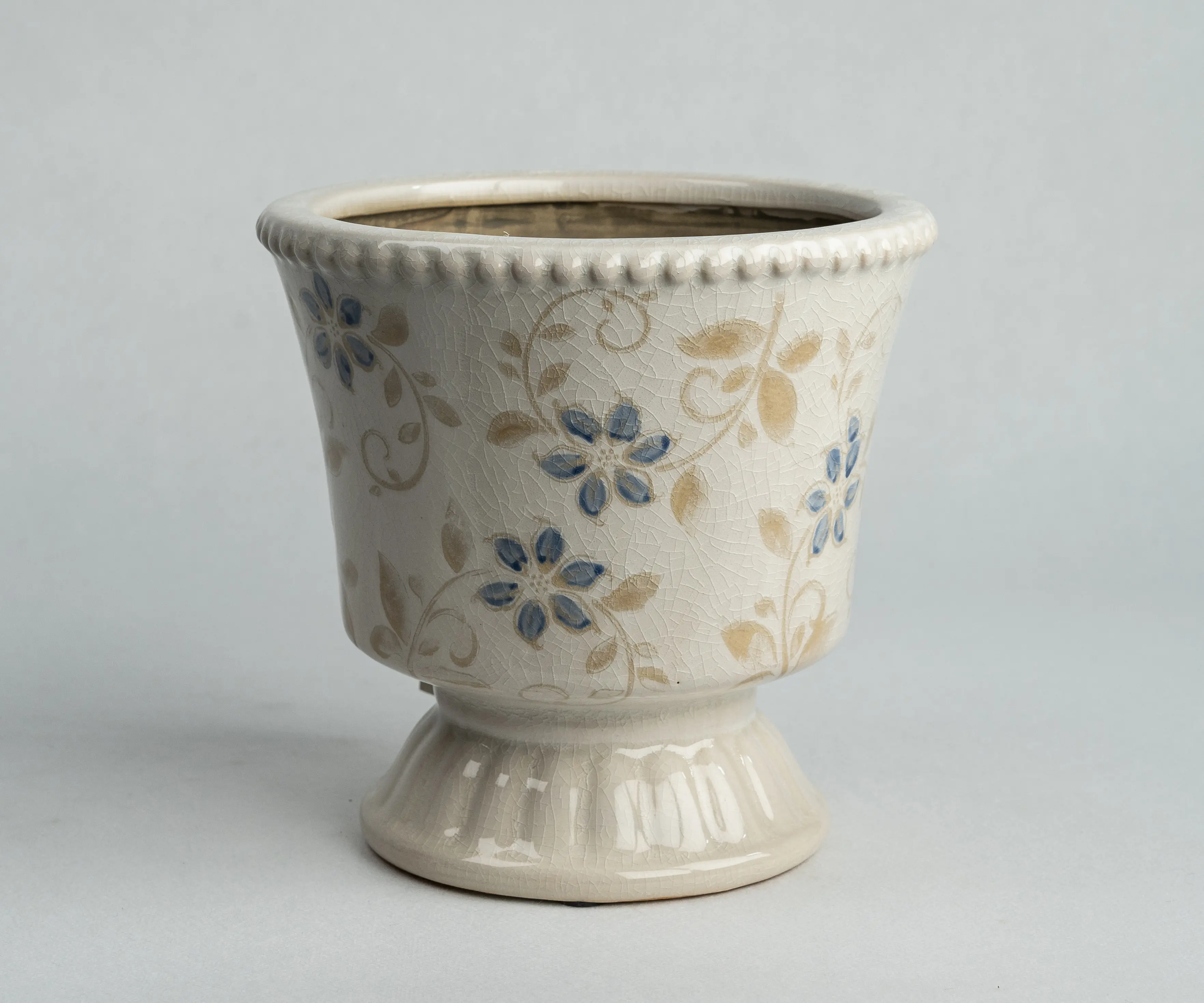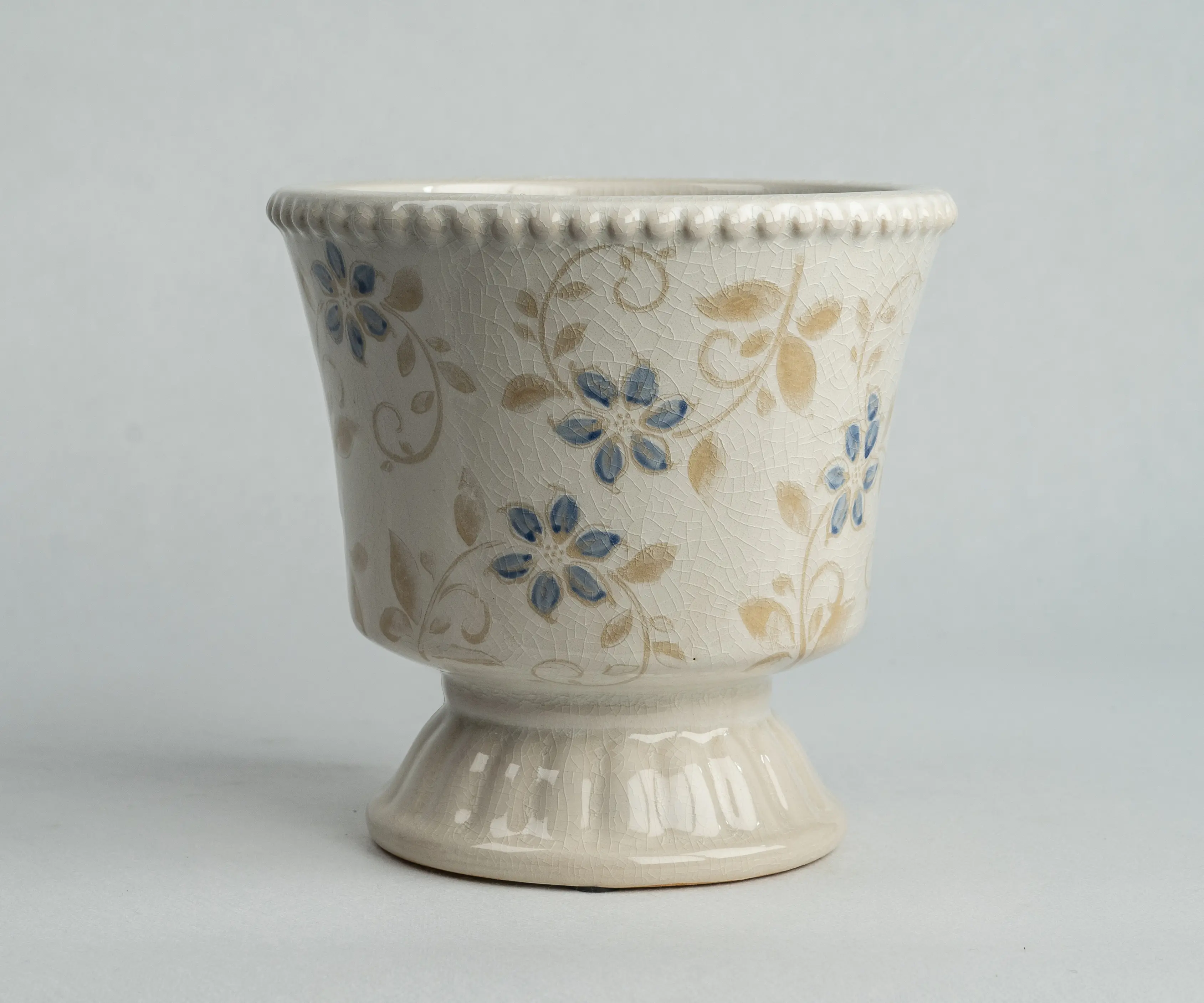 - Elegant Craftsmanship: Made with high-temperature crackle glaze and hand-painted blue floral patterns, each vase is one-of-a-kind. The beaded rim and fluted base add texture and stability, reflecting both vintage artistry and structural finesse.